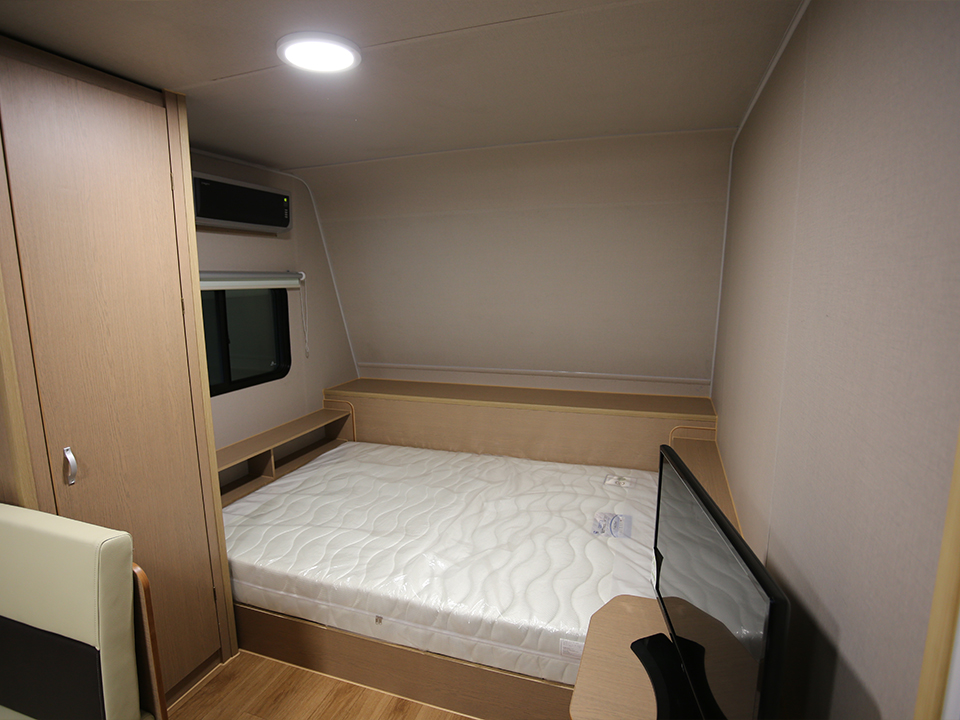 - 편의사양 : 에어컨7평형, 전기난방(바닥,온풍), 보조히터(2.0kw이상), LCD TV29인치, 135리터 냉장고, 전기렌지(2구), 전자레인지(15리터급), 전동후드, 3M차양막